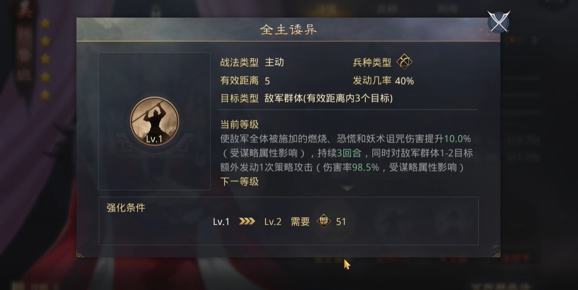 战法搭配是磐阵体系发挥威力的精髓所在,其中战必断金与磐阵善守的联动被广泛认为是开荒期的完美组合。战必断金能使敌军群体在前三回合陷入怯战状态,无法进行普通攻击,这直接保护了磐阵善守提供的减伤和规避效果不会被敌人的普攻轻易消耗掉,使得这两次保护效果能够完整地用于抵御敌方关键的主动战法伤害。在战法等级的分配上需要讲究策略,由于开荒期资源紧张,并非所有战法都需要点满。像战必断金这样的关键战法,在士气系统的加持下,通常点到一定等级(如5级)结合士气加成即可达到较高的生效概率,从而节省宝贵的战法经验用于其他方面。